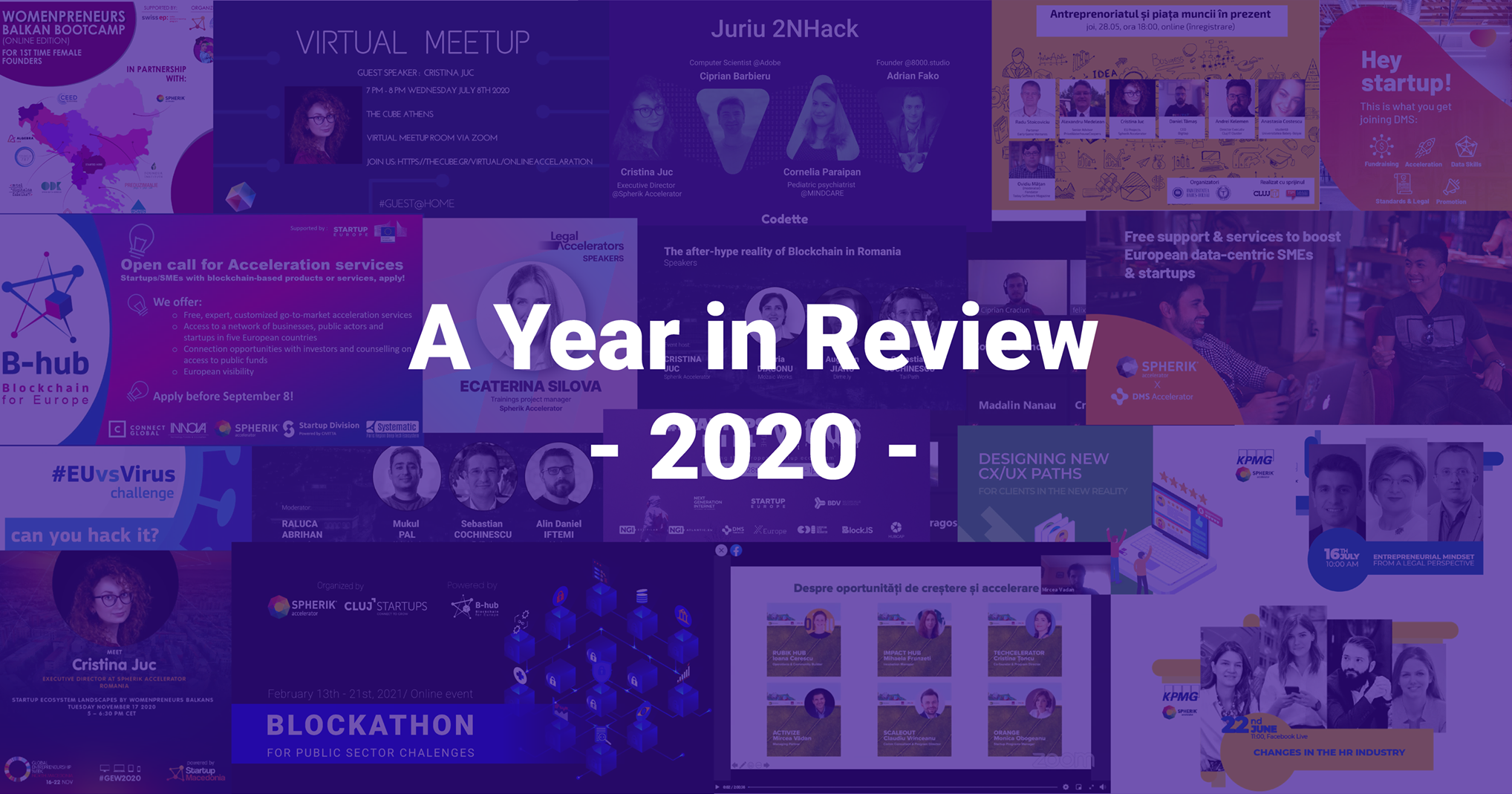 Just to mention a few of them: the #EUvsVirus innovation hackathon (Pan-european), #StartupsKilltheVirus (Spain), Antreprenoriatul și piața muncii în prezent (Cluj), Totul despre programele locale pentru startups (Bucharest), How to design an online acceleration program (Greece), Cluj Innovation Days (Cluj), 2NHack 2020 (Bucharest), Startup ecosystem landscapes by Womenpreneurs Balkans (Macedonia), Legal Accelerators (Cluj), and many more.